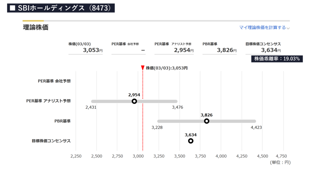 SBIホールディングスの「現在の株価は割安なのか?」把握をするために、下記の3項目を確認していきます。