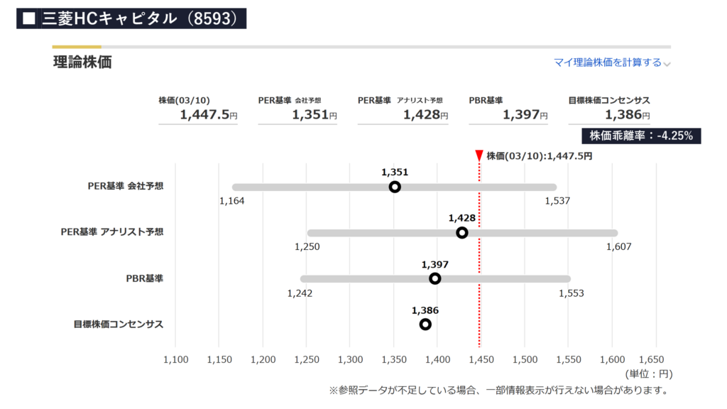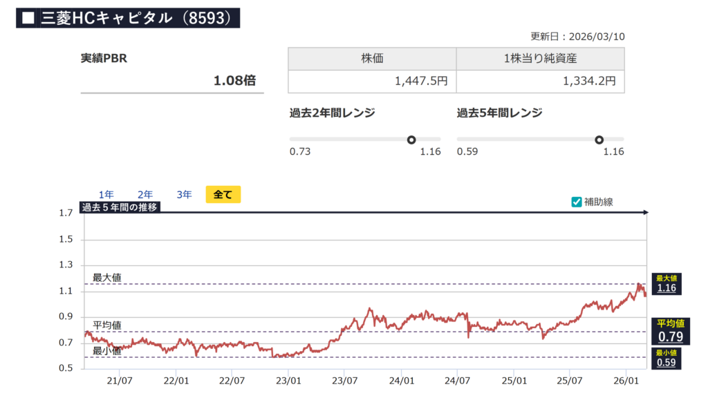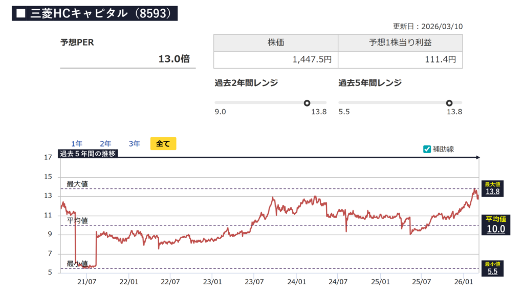 - 続いて、三菱HCキャピタルの株価の割安度合いについて確認をしていきましょう。