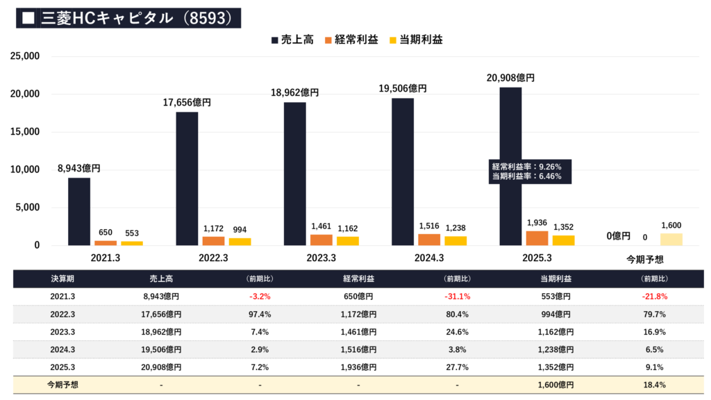 三菱HCキャピタルの「業績は伸びているのか?」把握をするために、下記の3項目を確認していきます。